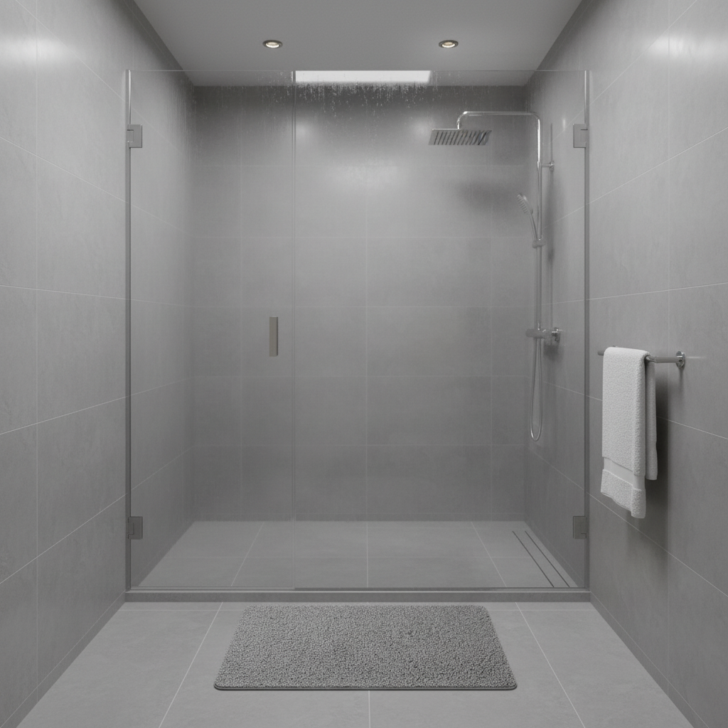 Die rutschfeste Duschmatte mit weicher Fußstütze bietet Sicherheit und Komfort beim Duschen. Sie ist mit einer schnell trocknenden Oberfläche ausgestattet, die für ein angenehmes Gefühl sorgt, während die starke Anti-Rutsch-Unterseite Stabilität auf nassen Fliesen gewährleistet. Diese Matte eignet sich ideal für begehbare Duschen und Badezimmer und ist zudem leicht zu reinigen.