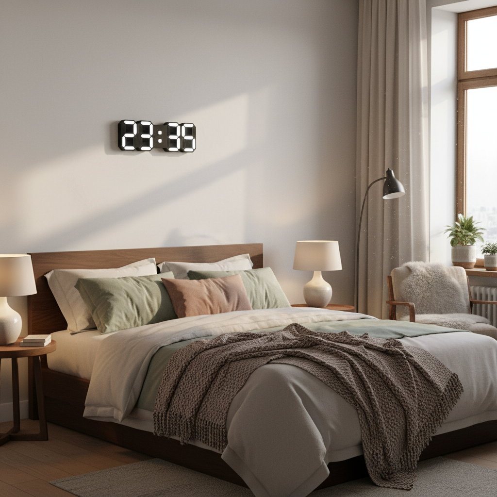 Verleihen Sie Ihrem Raum mit der Nyvox 3D-LED-Digital-Wanduhr einen futuristischen Touch. Diese innovative Uhr kombiniert präzise Zeitmessung mit modernem Design und wird zum stilvollen Akzent in jedem Raum. Ideal für Wohnzimmer, Schlafzimmer oder Büros, bringt sie Technik und Ästhetik harmonisch zusammen.